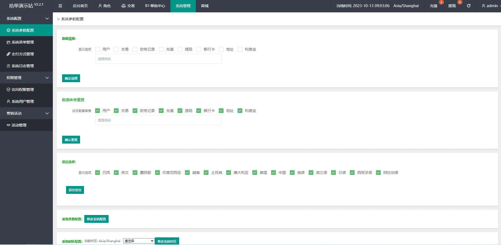 系统支预约爆单、叠加组、余额宝、时区设置等功能