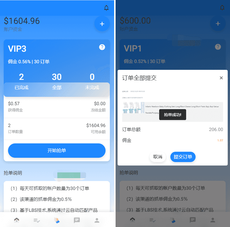 多语言海外抢单刷单系统/在线派单连单/叠加组/打针系统