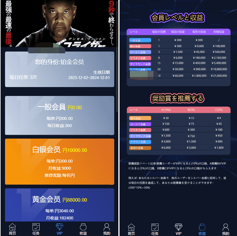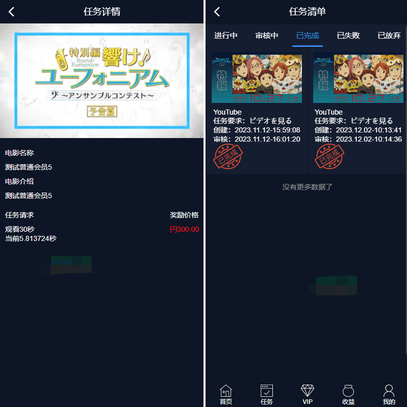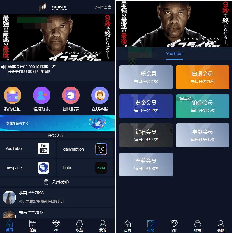 二开版看视频返利系统,前端vue开发,后端thinkphp框架全开源带源码 前端源码带多语言默认只有日语,后台添加任务可上传视频 玩法简介:会员购买套餐升级 领取任务,看视频时间到了自动完成订单 会员可分享链接邀请好友注册将获得提成