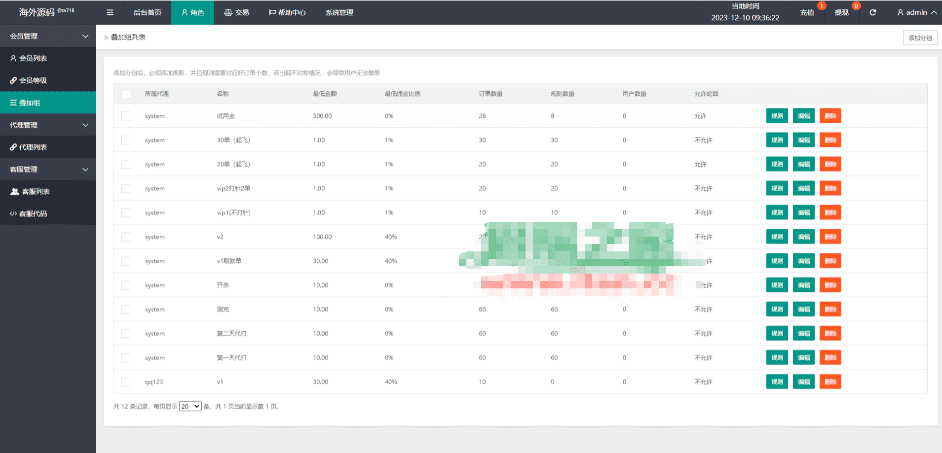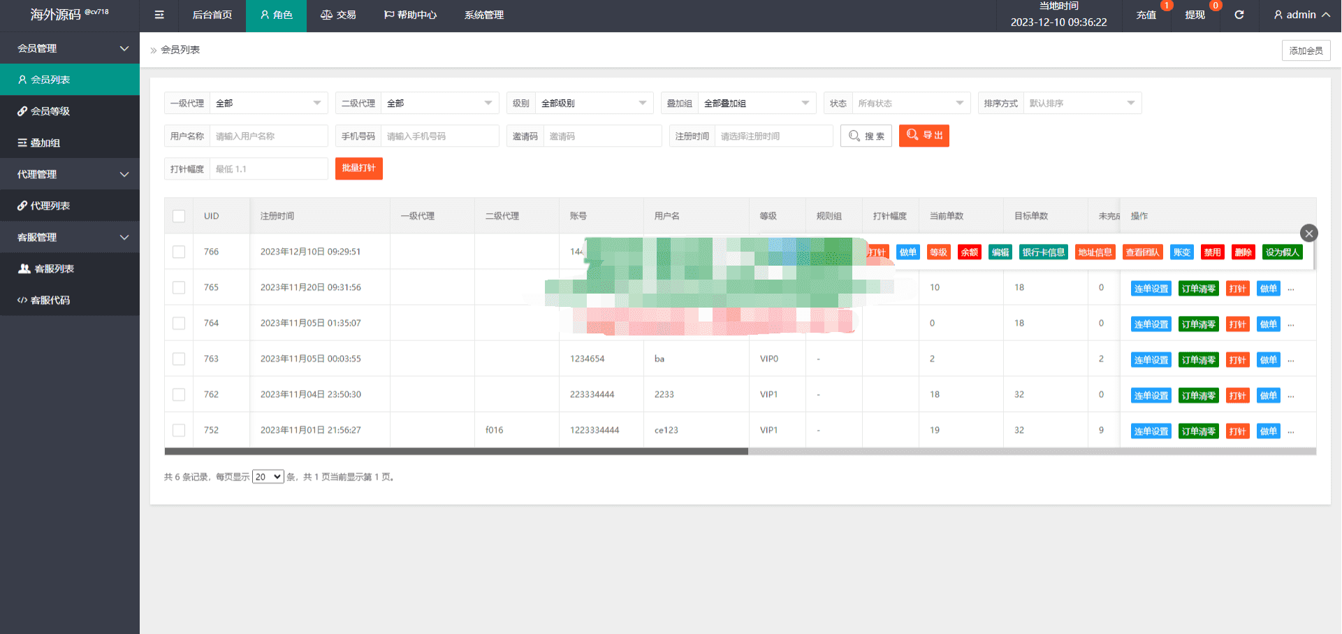 系统支持连单卡单、叠加租、打针、权限代理等功能