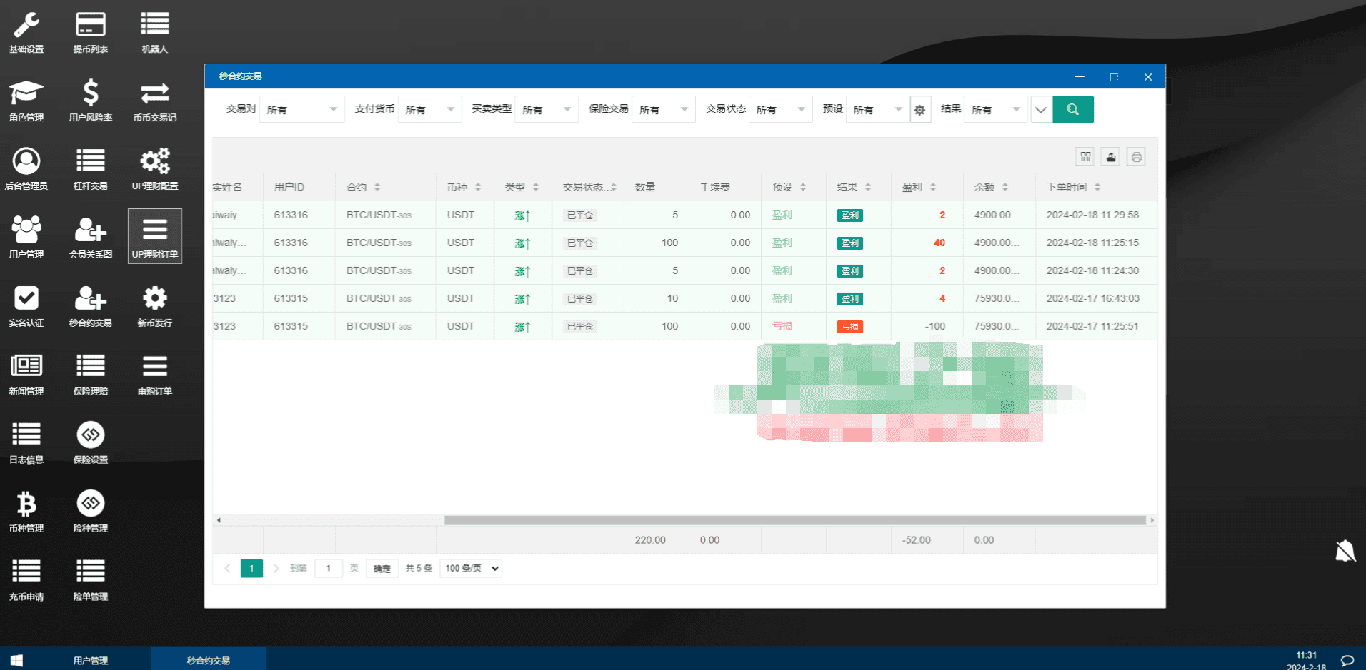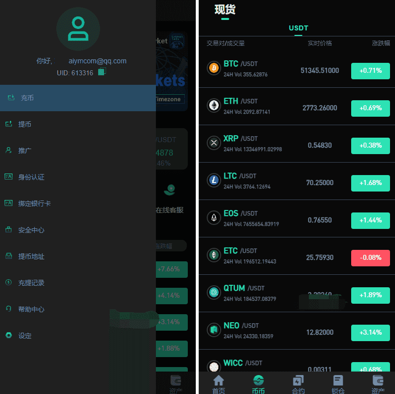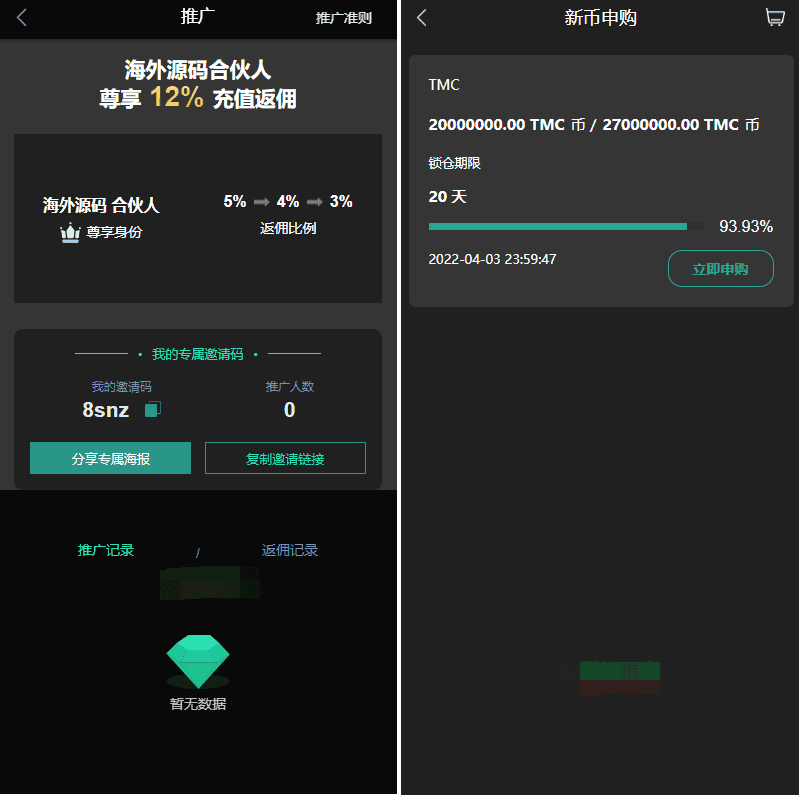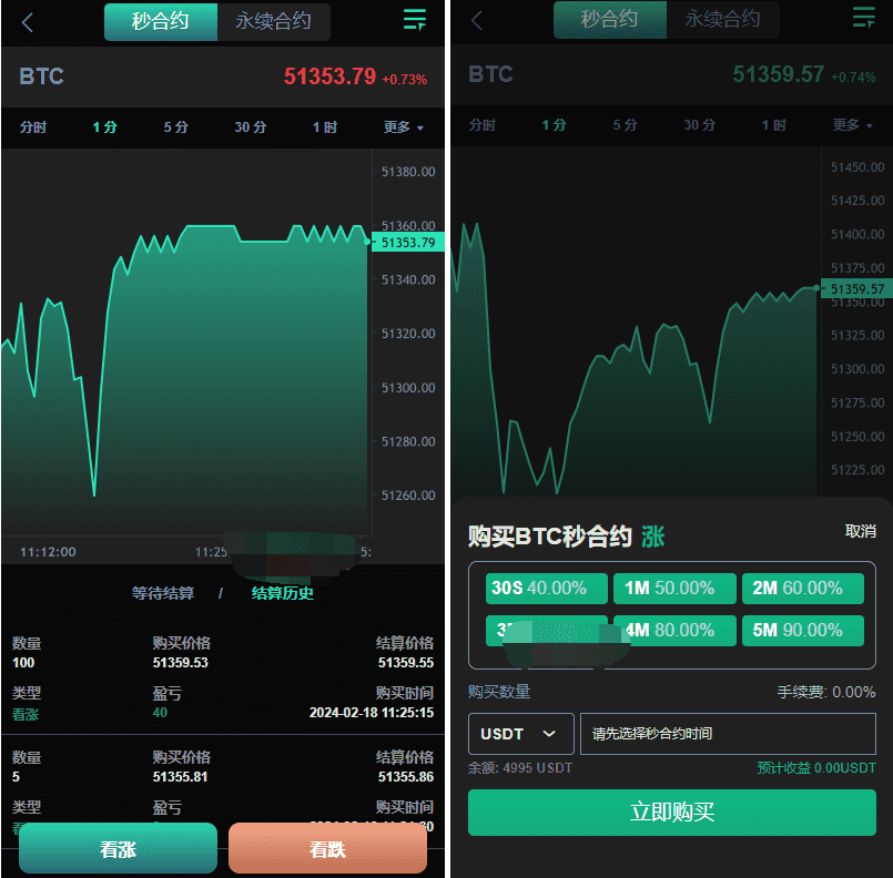 系统功能支持:秒合约、合约、锁仓挖矿、新币认购功能,无平台币