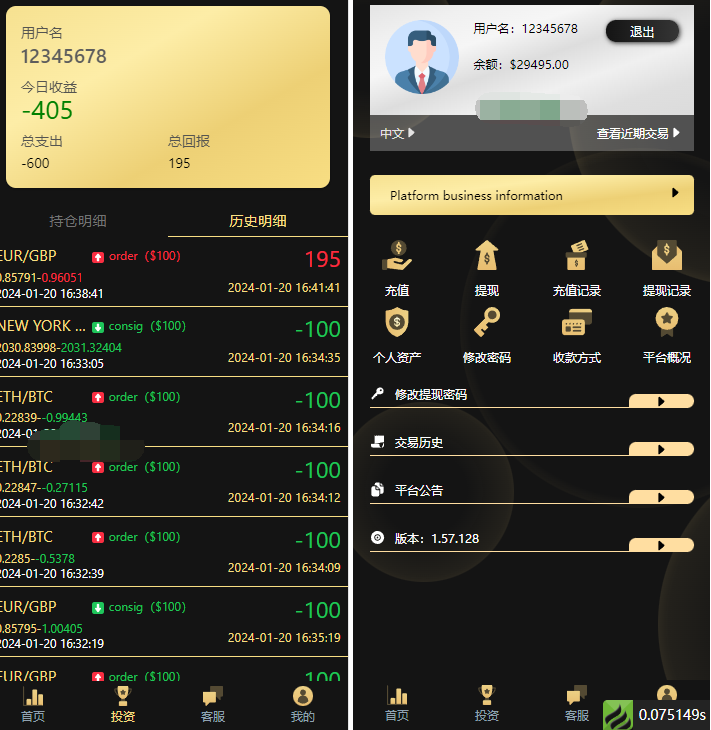 证券微交易系统/期货微盘源码/时间盘投资理财