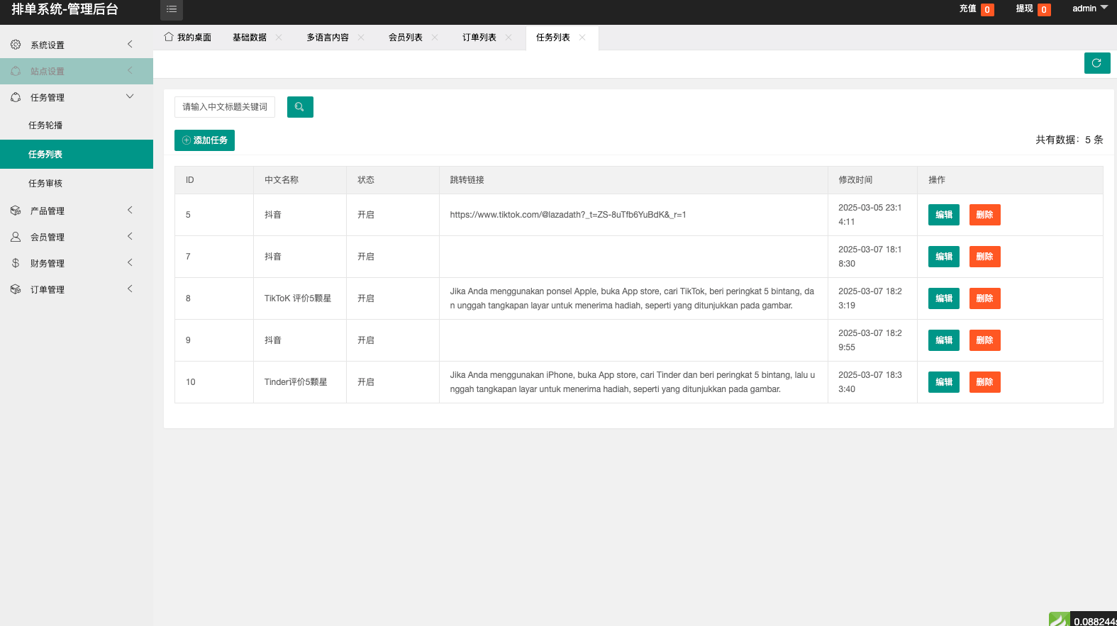 双UI多语言海外抢单刷单系统/分组派单/订单自动匹配系统