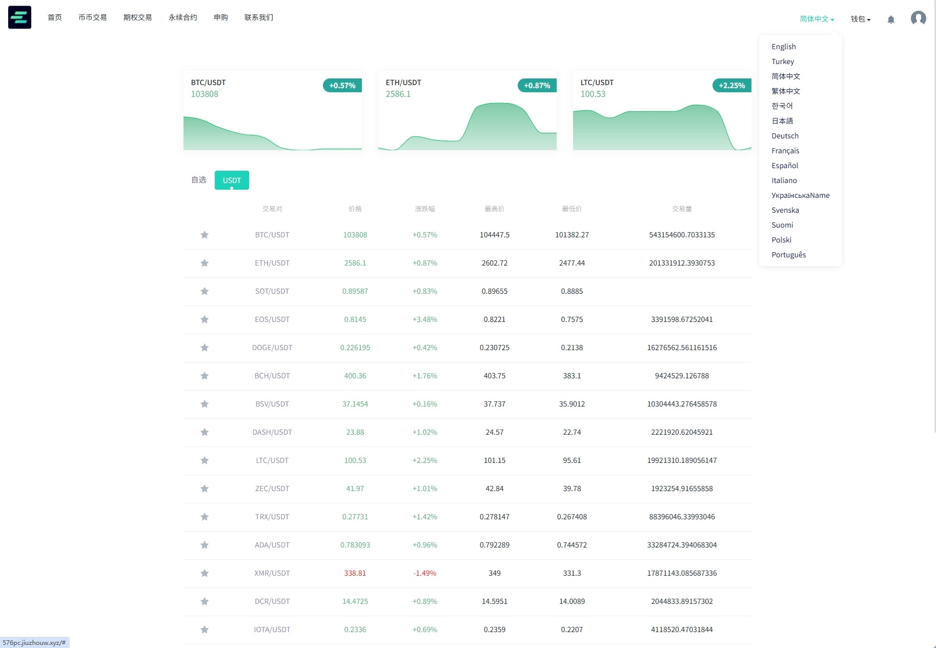 1、平台概况(实时行情、高端K线、BI数据分析、币种统计、用户统计、交易统计、异常用户)