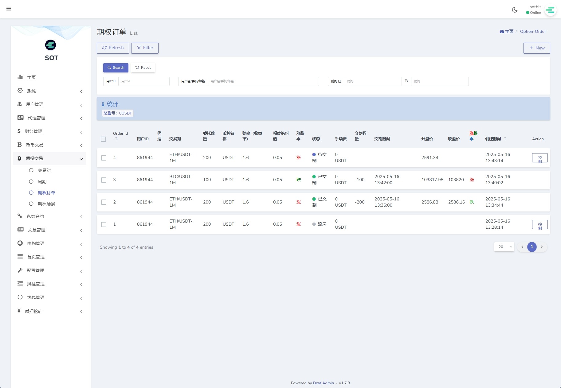 4、币种管理(币种的添加设置、提币账户管理、是否显示、交易对管理)
