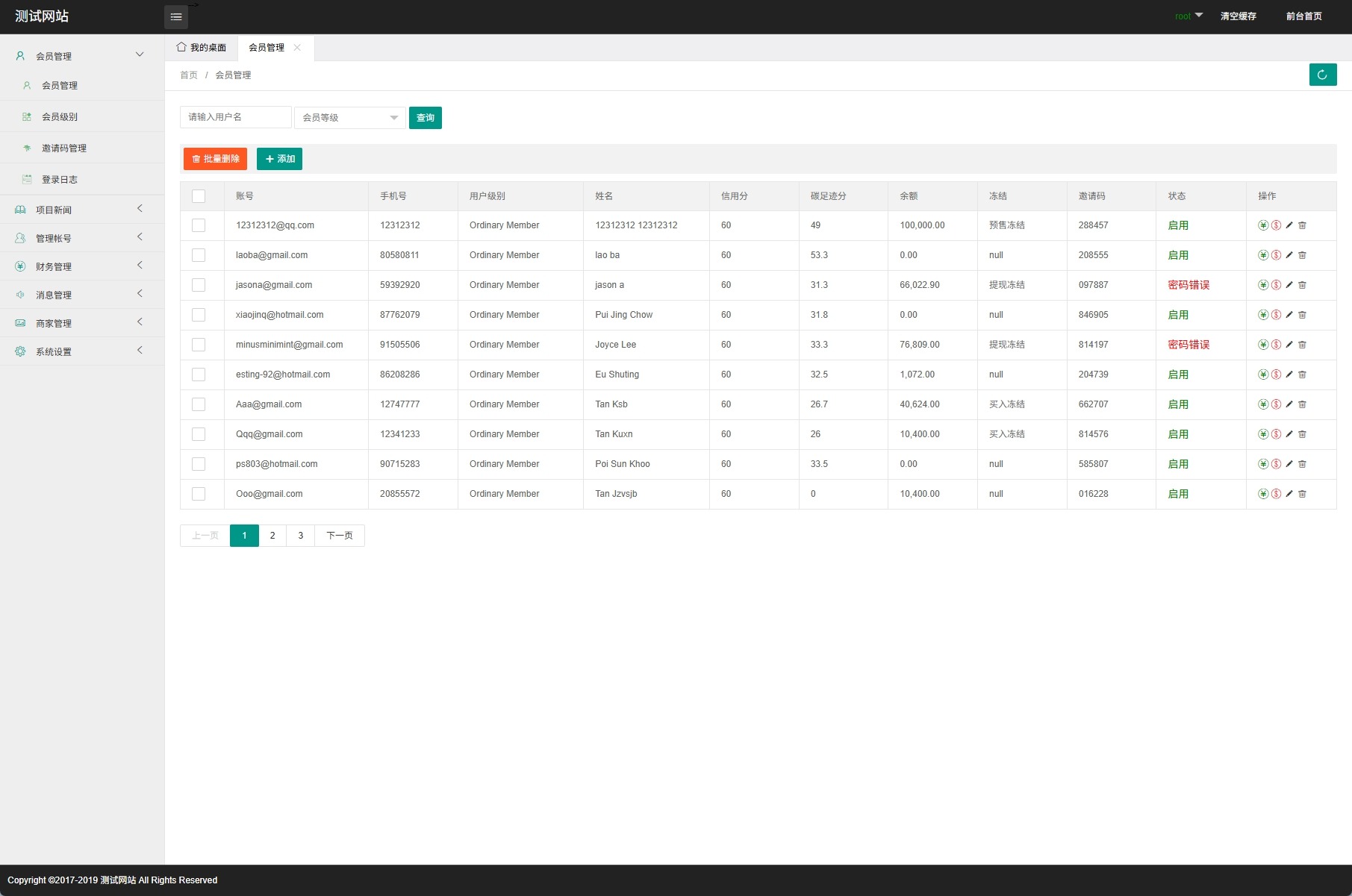,投资密码,注册邀请码等功能