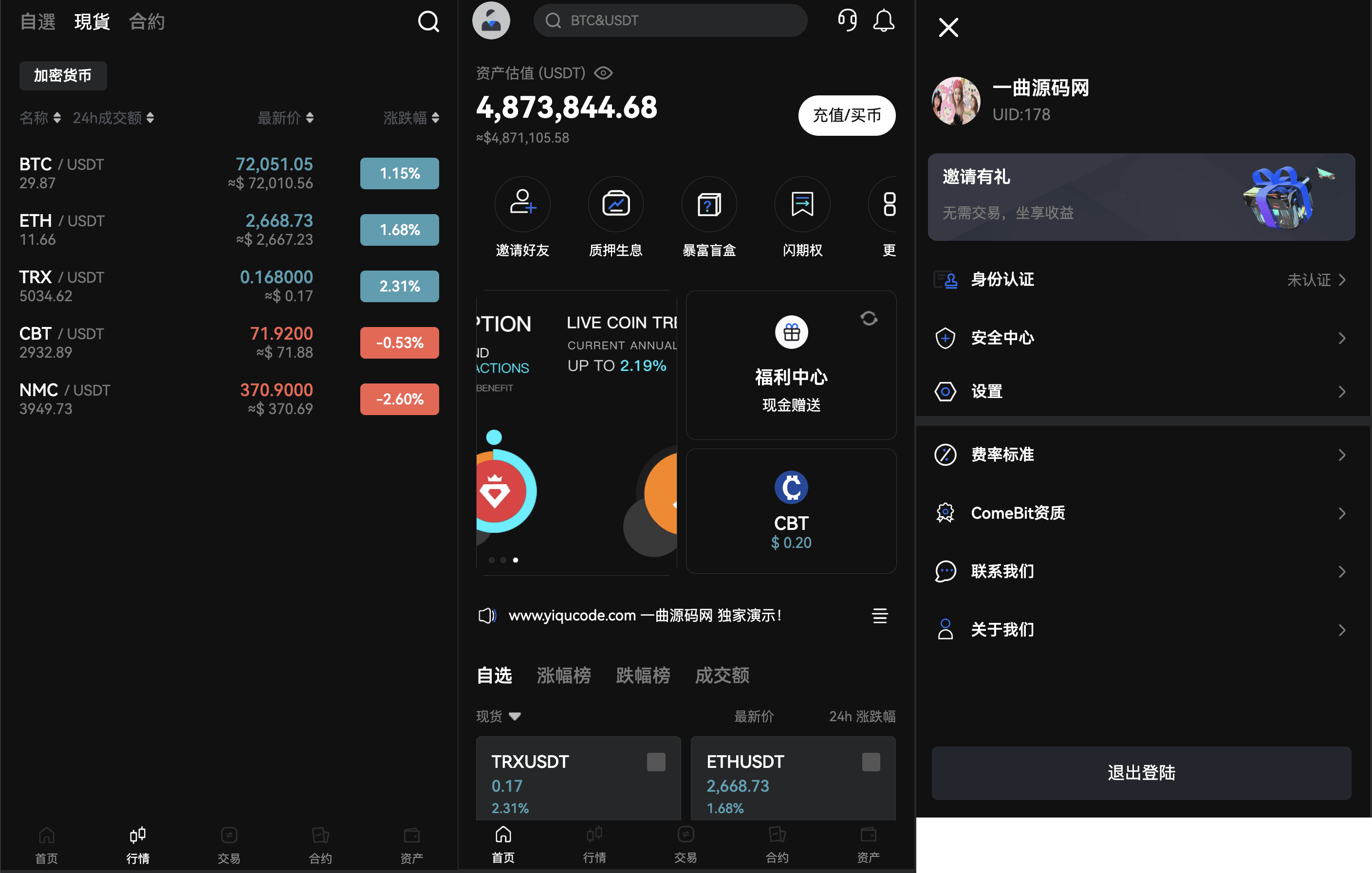 全开源 可二开!带视频搭建教程, 系统性能超优 企业级源码! 支持功能 自定义币种,手续费,交易精度,otc 交易类型(衍生品交易,币币交易,期权),是否可充值等。 行情数据对接头部交易所币种行情接口。 功能强大 基本市面交易所功能都有。 (本源码仅限于交流学习,凡涉及到法律问题均与本站无关) 后端程序语言:PHP (全开源) 前端程序语言:VUE (全开源) 环境为php8.1,mysql8.0,swoole5,框架为hyperf3.1