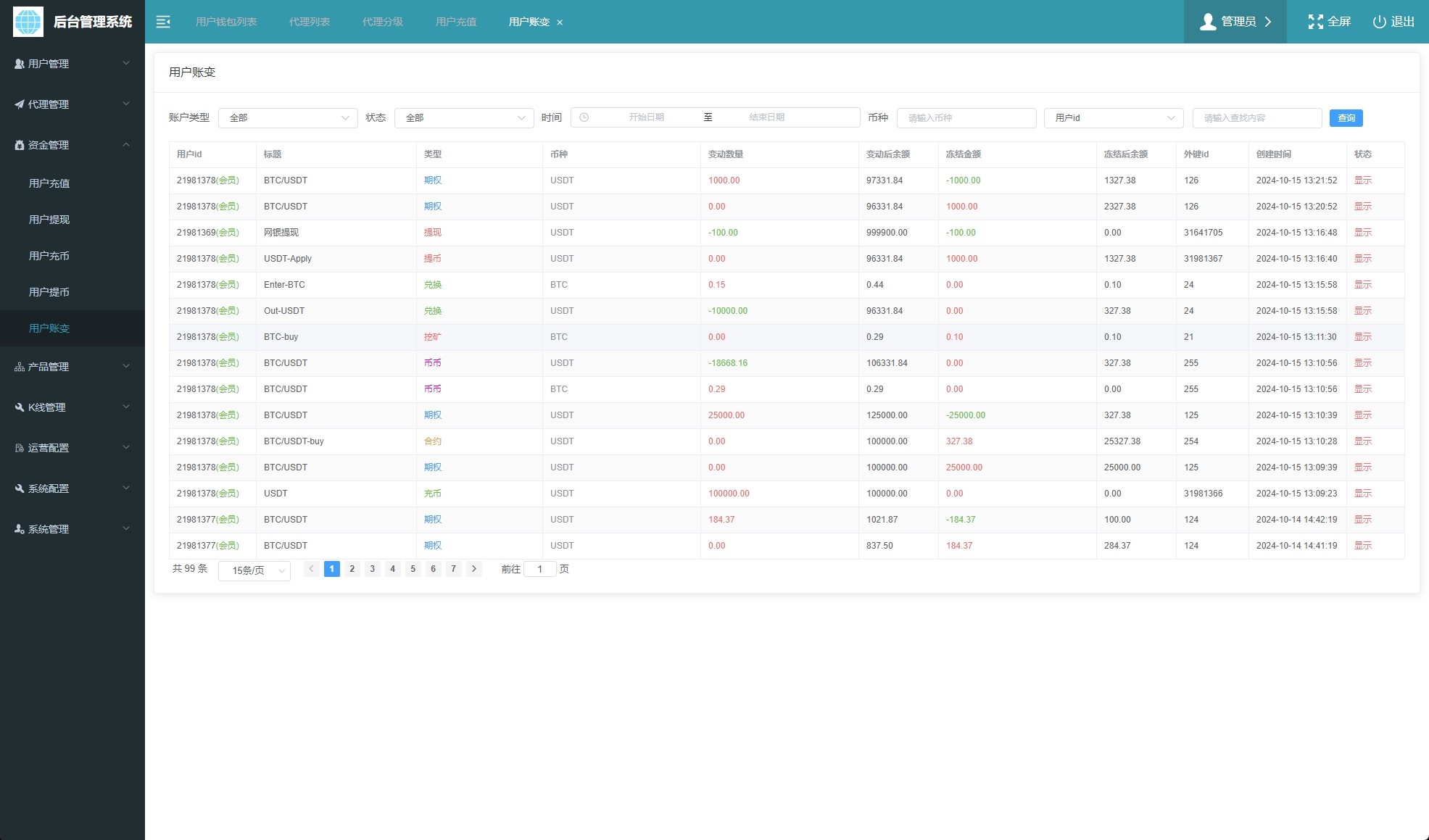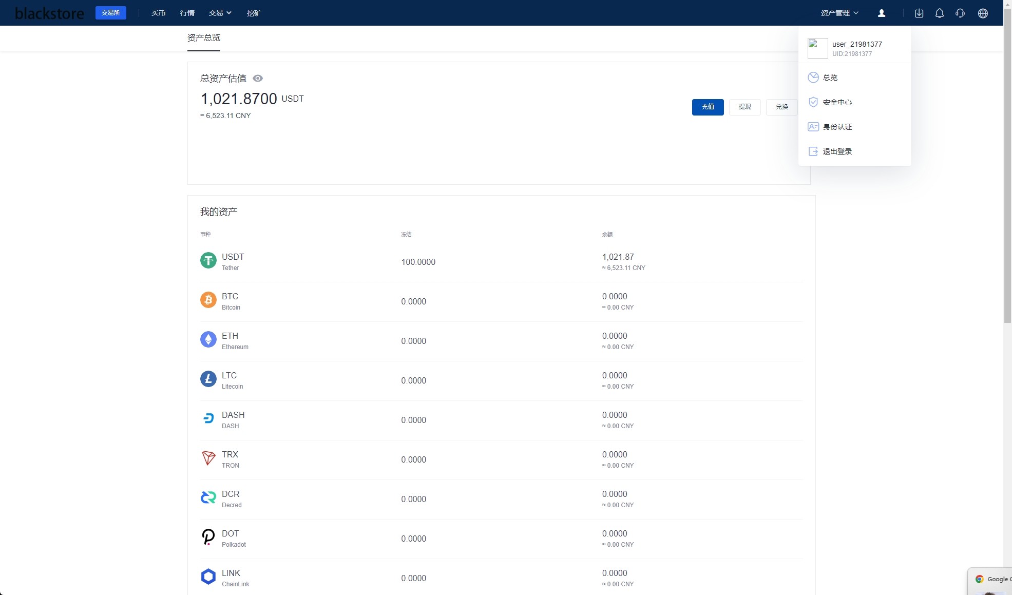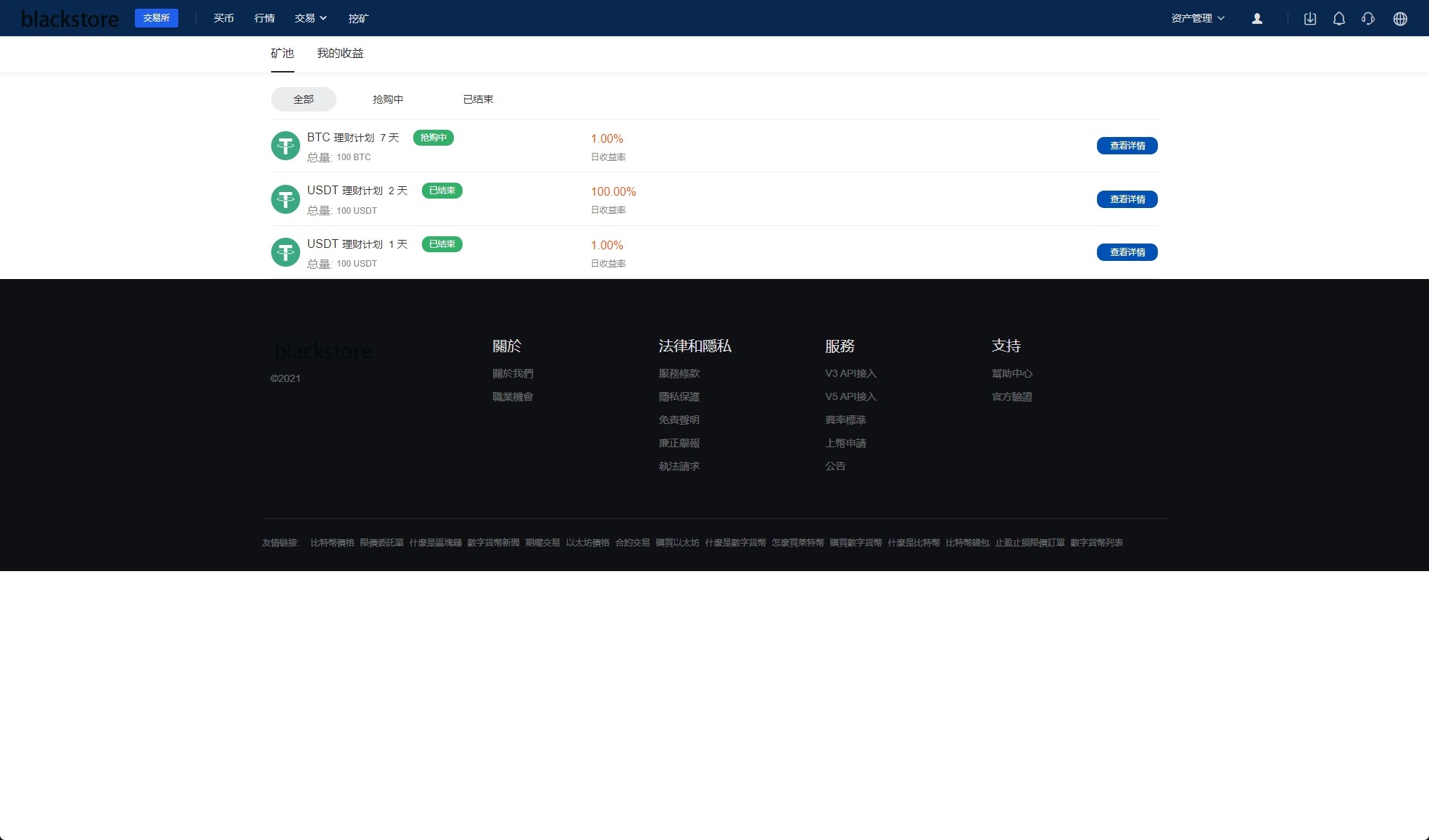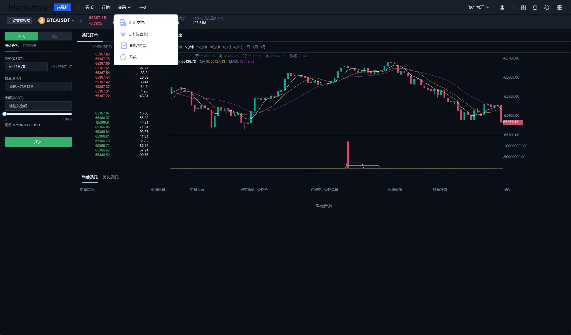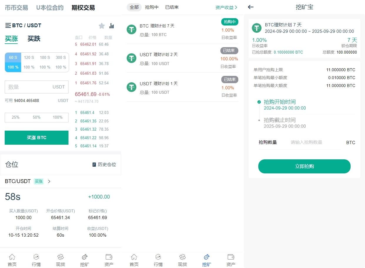 系统功能:币币交易、U本位合约、期权交易、挖矿、兑换等功能