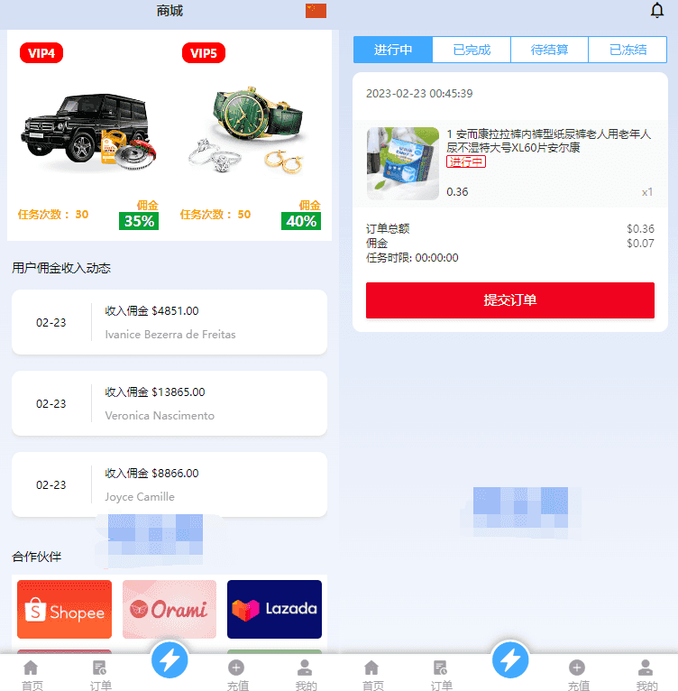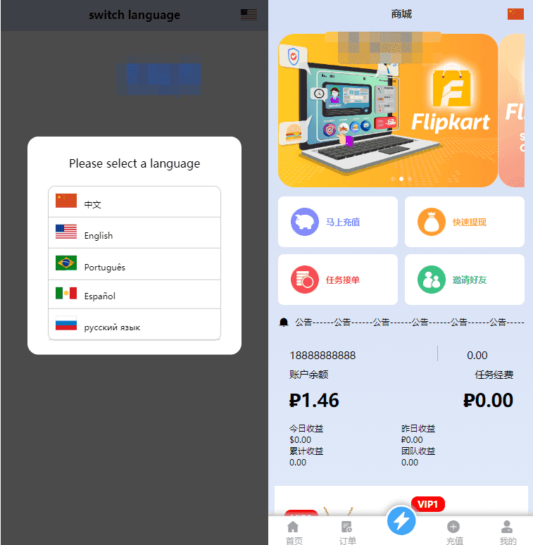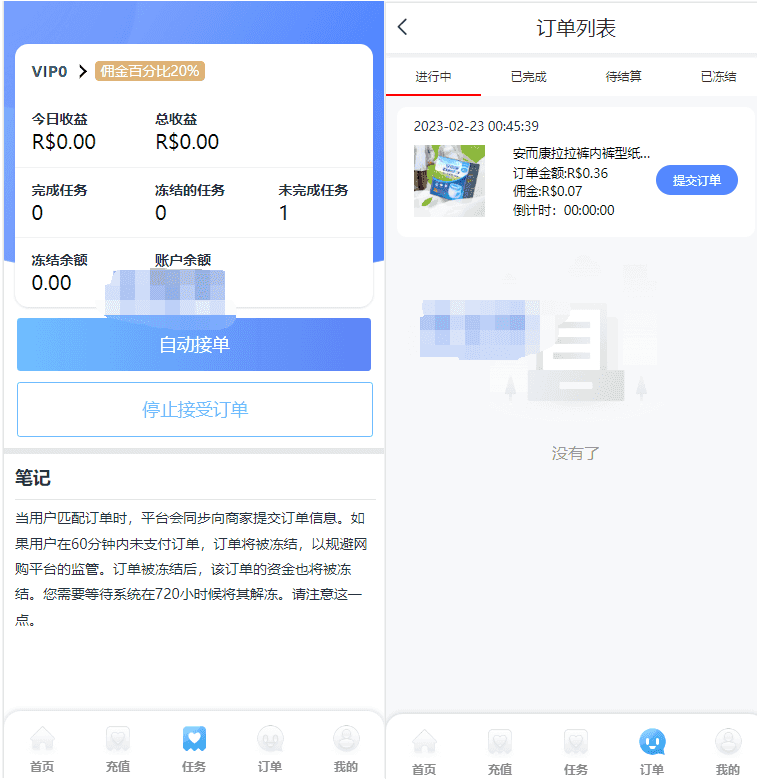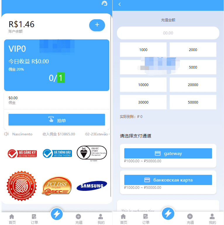 此套系统是别人全新二开的,非以往的框架开发 前端双套UI支持后台切换,多语言支持切换设置默认语言(源码里附带多个语言包需要自己设置) 系统功能支持: 待结算:订单提交了不会马上结算,可以修改这个待结算,如果输入0那么订单提交了马上结算, 超时时间:订单匹配到在这个时间内没有提交会被冻结,冻结了没办法提交,只有后台手动解封 会员有分组时就按照分组里的规则派单,没有分组时按照会员等级匹配