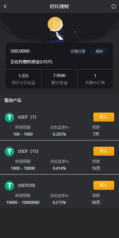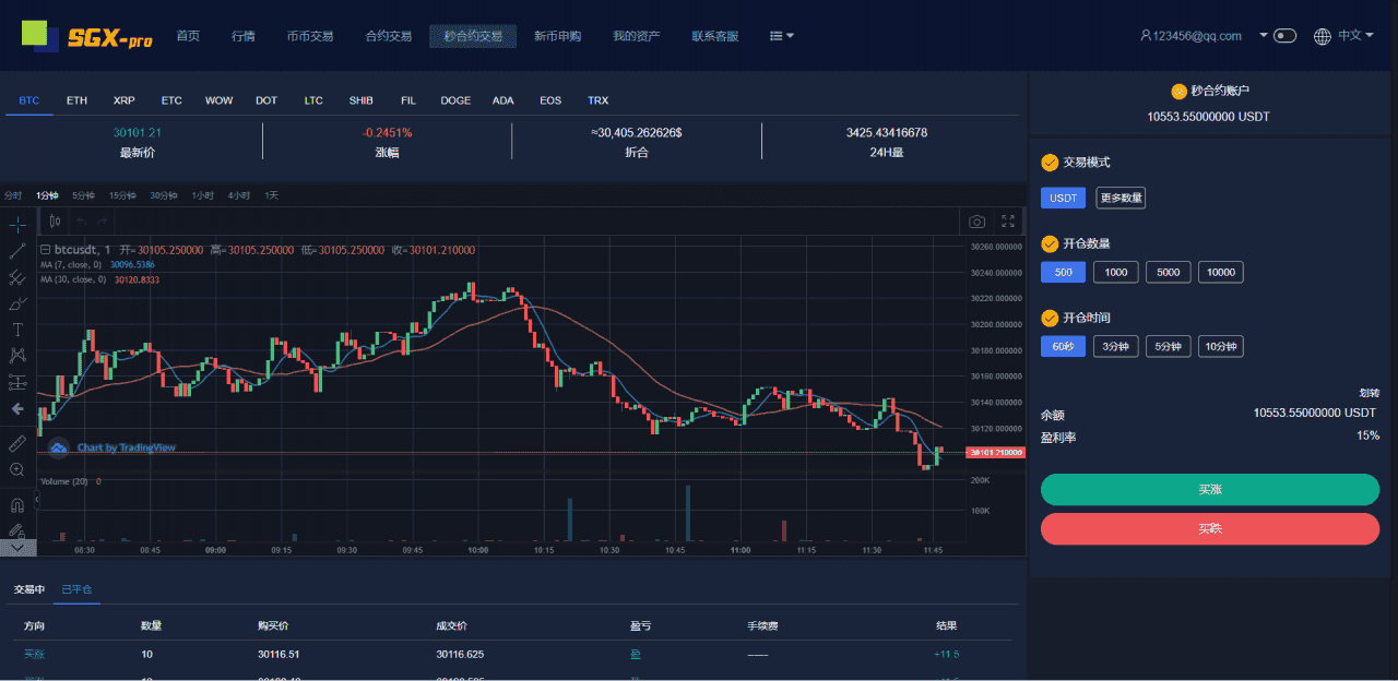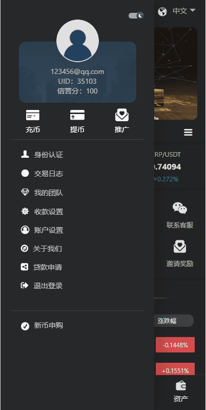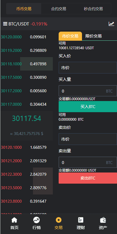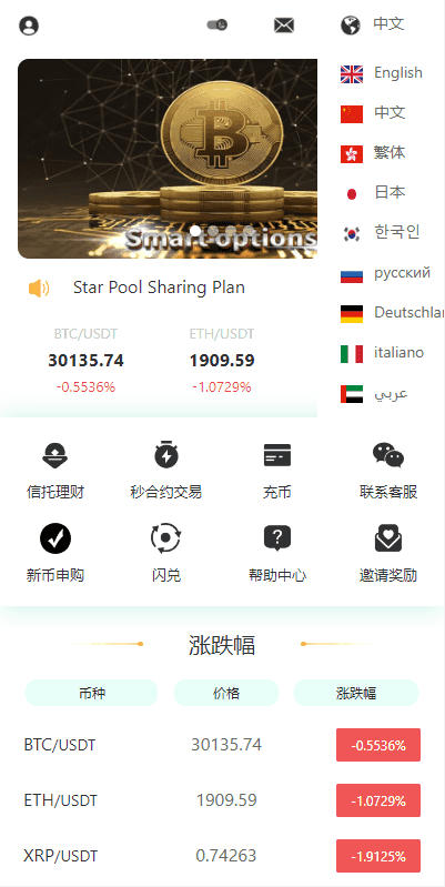功能支持:币币交易、合约交易、秒合约交易、闪兑、借贷、理财、认购等