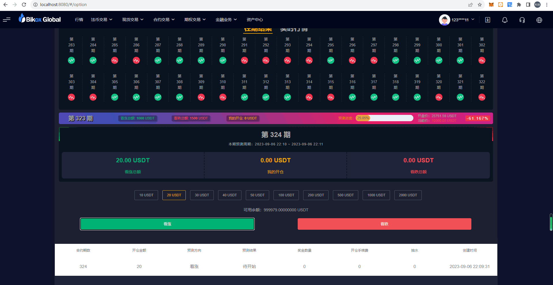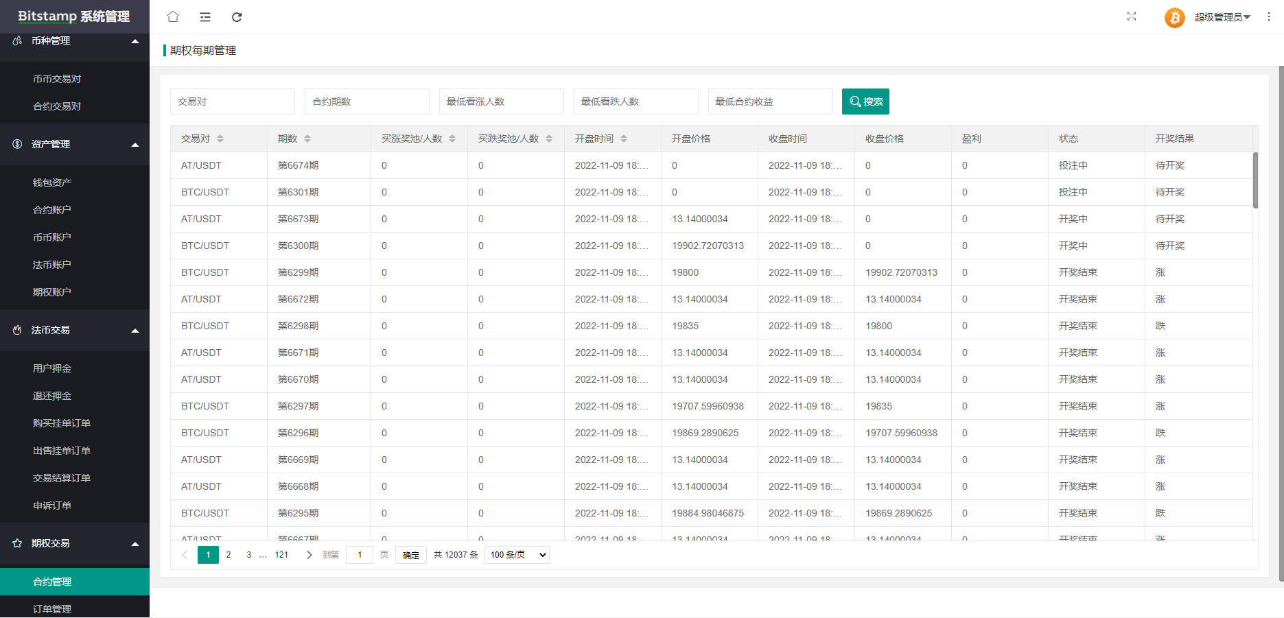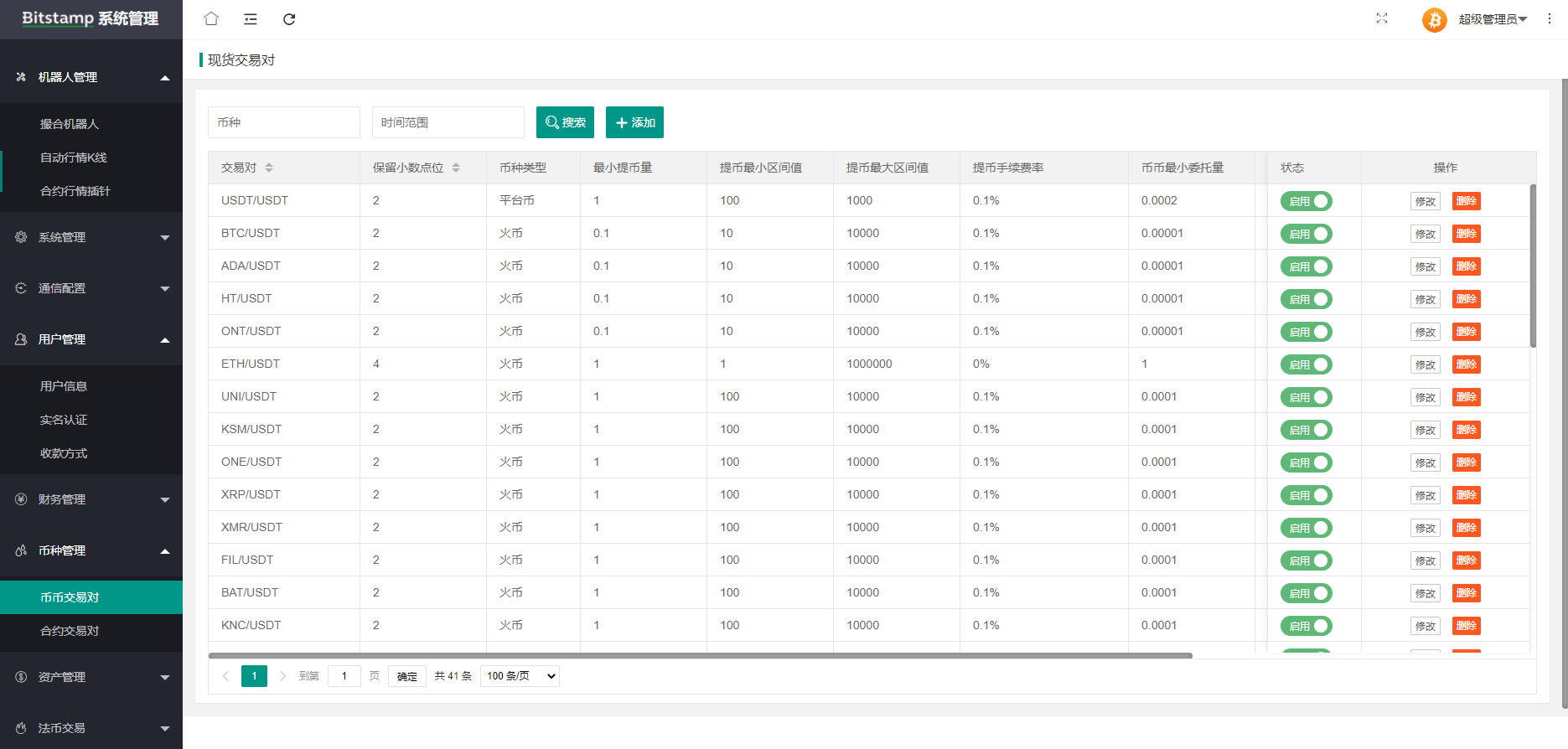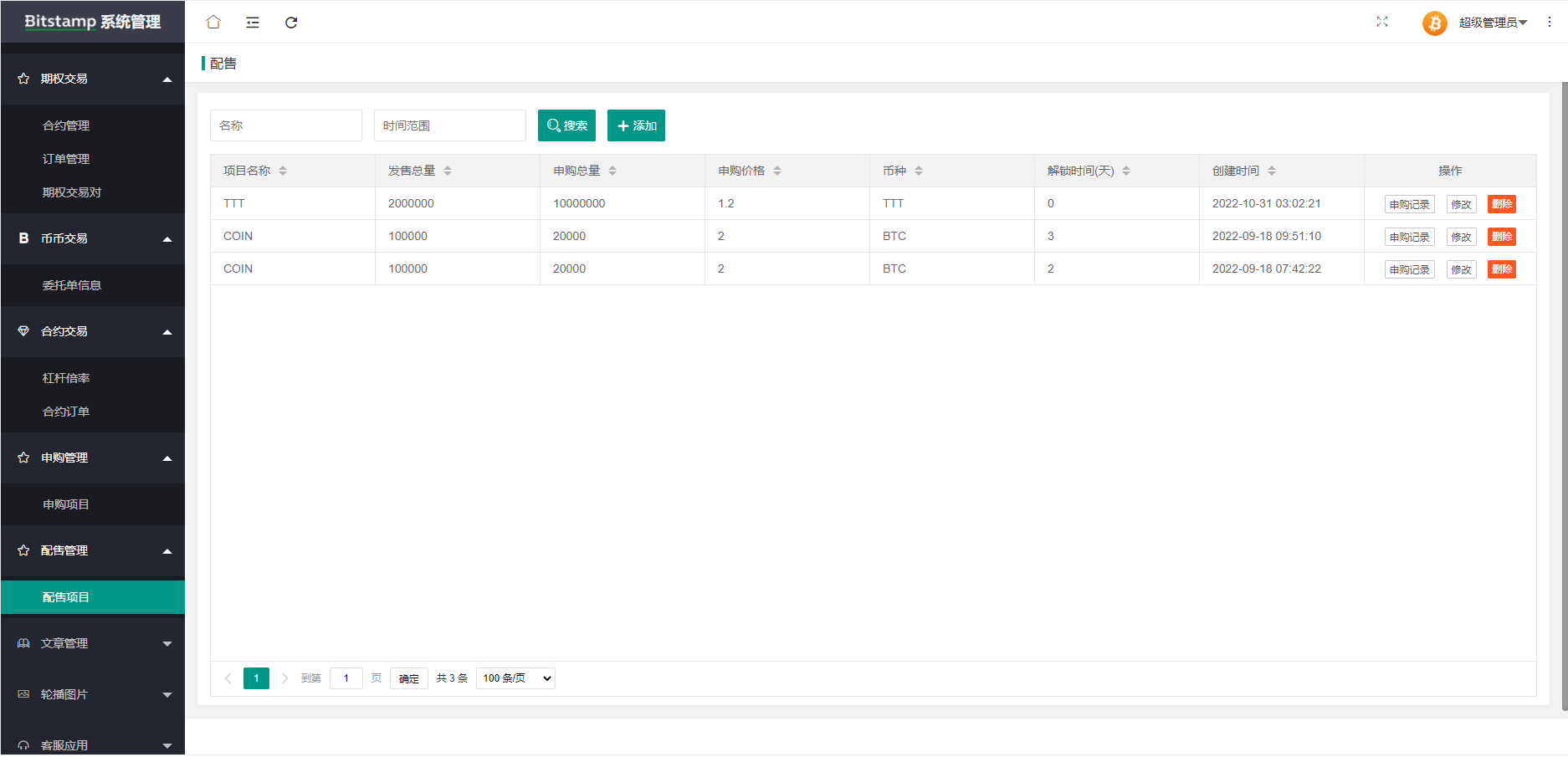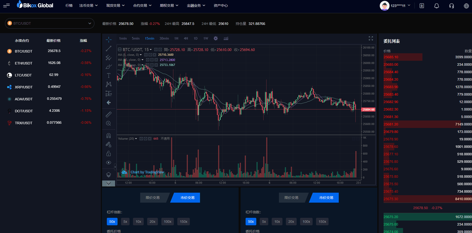 系统带期权、合约、法币交易、可发币控行情,不带理财挖矿